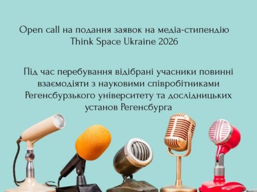 Media Felloship Think Space Ukraine 2026 запрошує подавати заявки медіапрофесіоналів. Fellowship передбачає гонорари на один або два тижні у розмірі 1 400 € за тиждень (7 днів) для журналістів, відеомейкерів, фотографів […]